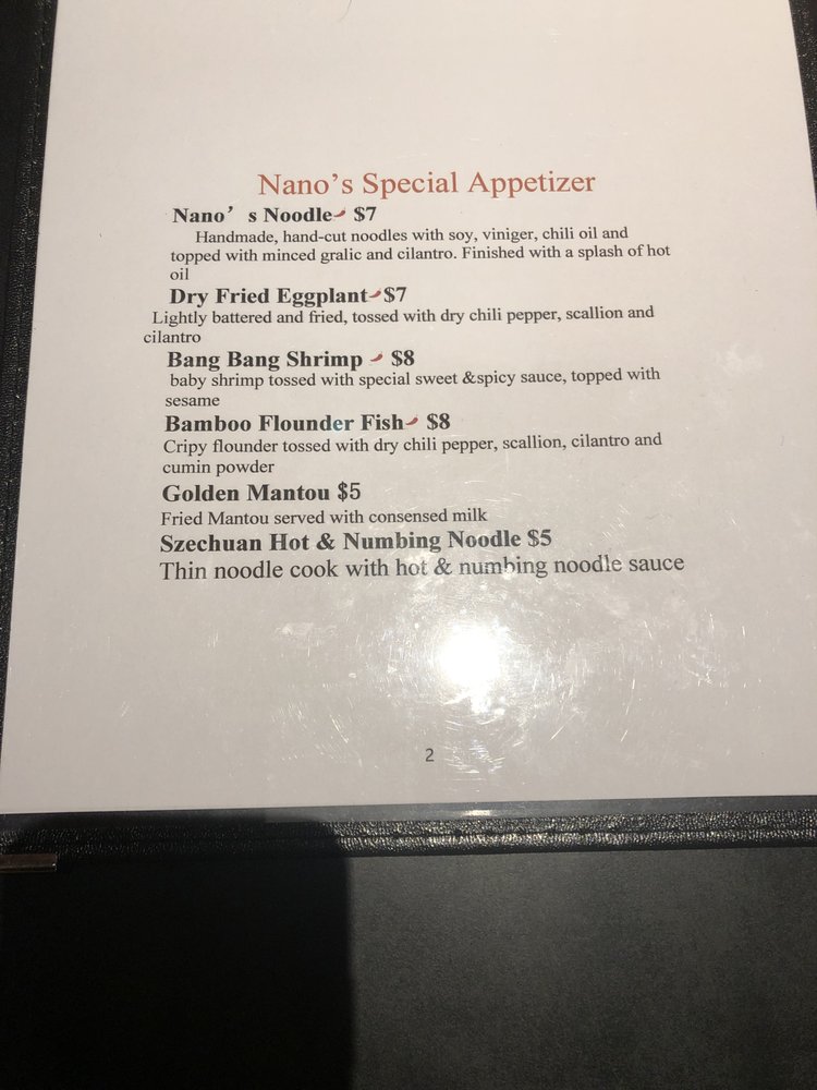Introducing the menu at Nano Asian Dining, located at 189 A Main St in Annapolis, MD. This Chinese-Sushi Bars fusion restaurant offers a variety of appetizers, from Bamboo Flounder Fish to Golden Mantou, along with sushi bar options like Tuna Sashimi and Fire Crackers. The salads, including Seaweed Salad and Grilled Beef Salad, add some freshness to the menu. Customers rave about the flavorful dishes, quick service, and affordable prices. The vegetarian sushi combo and tofu rice pouches are standouts, with other favorites like the rock'n roll sushi roll and combination fried rice receiving high praise. The restaurant's clean and modern ambiance, coupled with excellent service, make for a pleasant dining experience. With a diverse menu and generous portion sizes, Nano Asian Dining is a hidden gem in Annapolis for a satisfying and affordable meal.